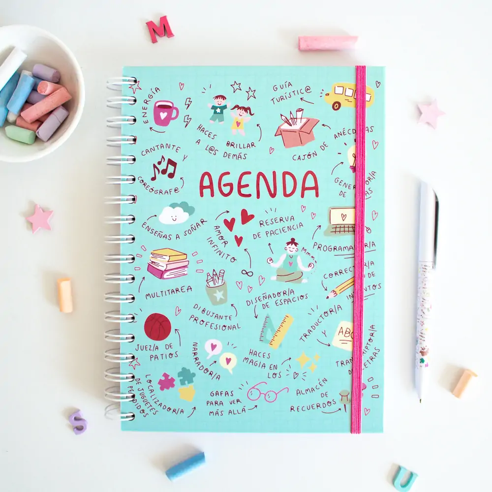 El cuaderno para profes, maestros, maestras… amantes de la educación es nuestra colección MAESTRA 25/26 ¡NO puede ser más completo!, planificación con apartado para agendar, evaluación, reuniones, tutorías, registros varios, notas… y un montón de plantillas para anotarlo todo. Un diseño que nos tiene enamoradas y que lleva la esencia de Una Pizca de Educación en cada página. Un montón de detalles que lo hacen insuperable: goma para cerrar, separadores plastificados, lámina bonitas, sobre, portadas a todo color, impreso a 4 tintas…