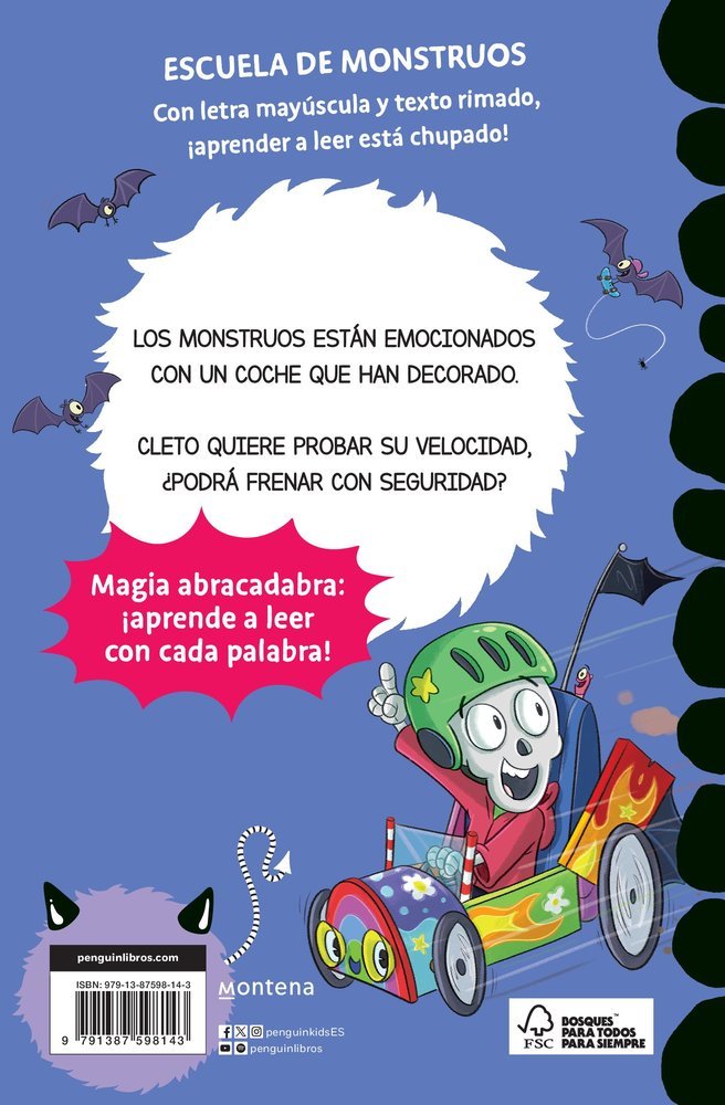 APRENDE A LEER EN LA ESCUELA DE MONSTRUOS. Bienvenidos a la Escuela de Monstruos, la más emocionante y divertida que existe. Más de 1 millón de pequeños lectores. Los monstruos están emocionados con un coche que han decorado. Cleto quiere probar su velocidad, pero… ¿será capaz de frenar con seguridad? Una escuela en la que aprenderemos a leer de forma sencilla y divertida.