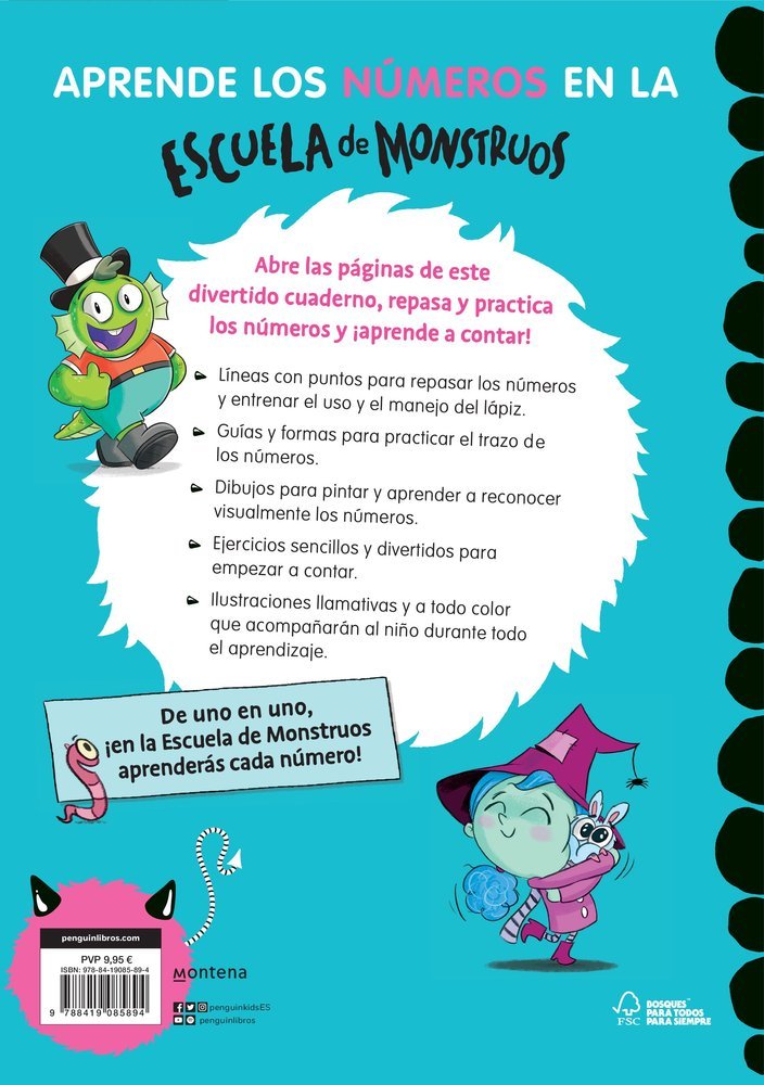 ¡Aprende los NÚMEROS en la Escuela de Monstruos! Un divertido cuaderno para aprender a repasar y practicar los números. Abre las páginas de este divertido cuaderno, repasa y practica los números y ¡aprende a contar! -Líneas con puntos para repasar los números y entrenar el uso y el manejo del lápiz. -Guías para practicar el trazo de los números, con formas para reseguirlos. -Dibujos para pintar y aprender a reconocer visualmente los números. -Ejercicios sencillos y divertidos para empezar a contar. -Ilustraciones llamativas y a todo color que acompañarán al niño durante todo el aprendizaje. De uno en uno,¡en la Escuela de Monstruos aprenderás cada número!