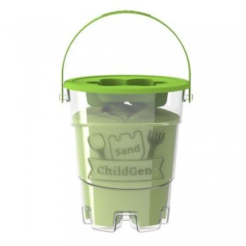 Diviértete con la arena mágica 100% Natural Childgen 500gr color verde y no dejes muy lejos su divertido bote con tapa con molde de huella,