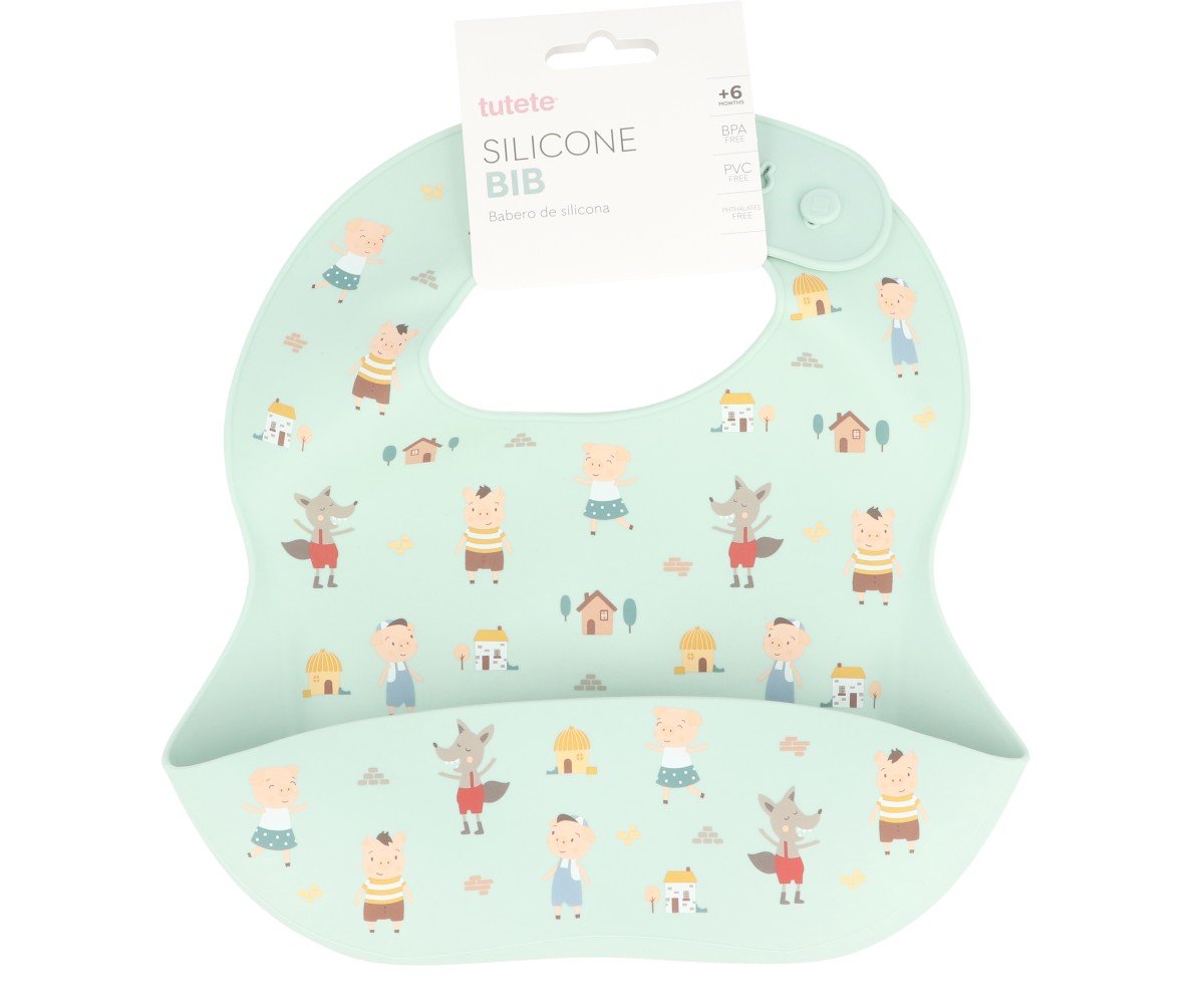 Babero de silicona de la colección vuelta al cole The Three Little Pigs de Tutete.