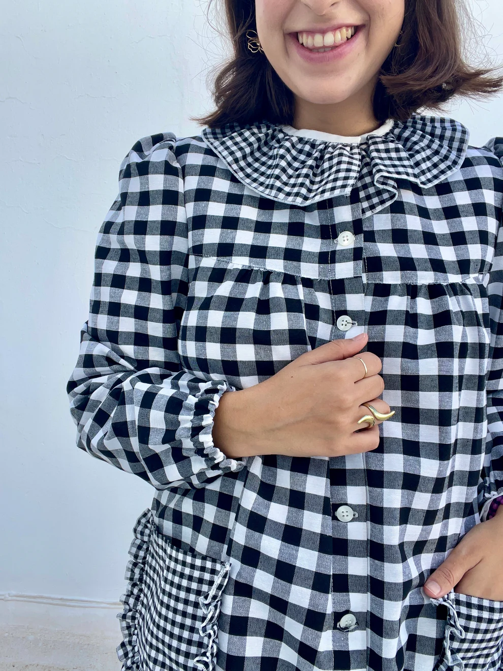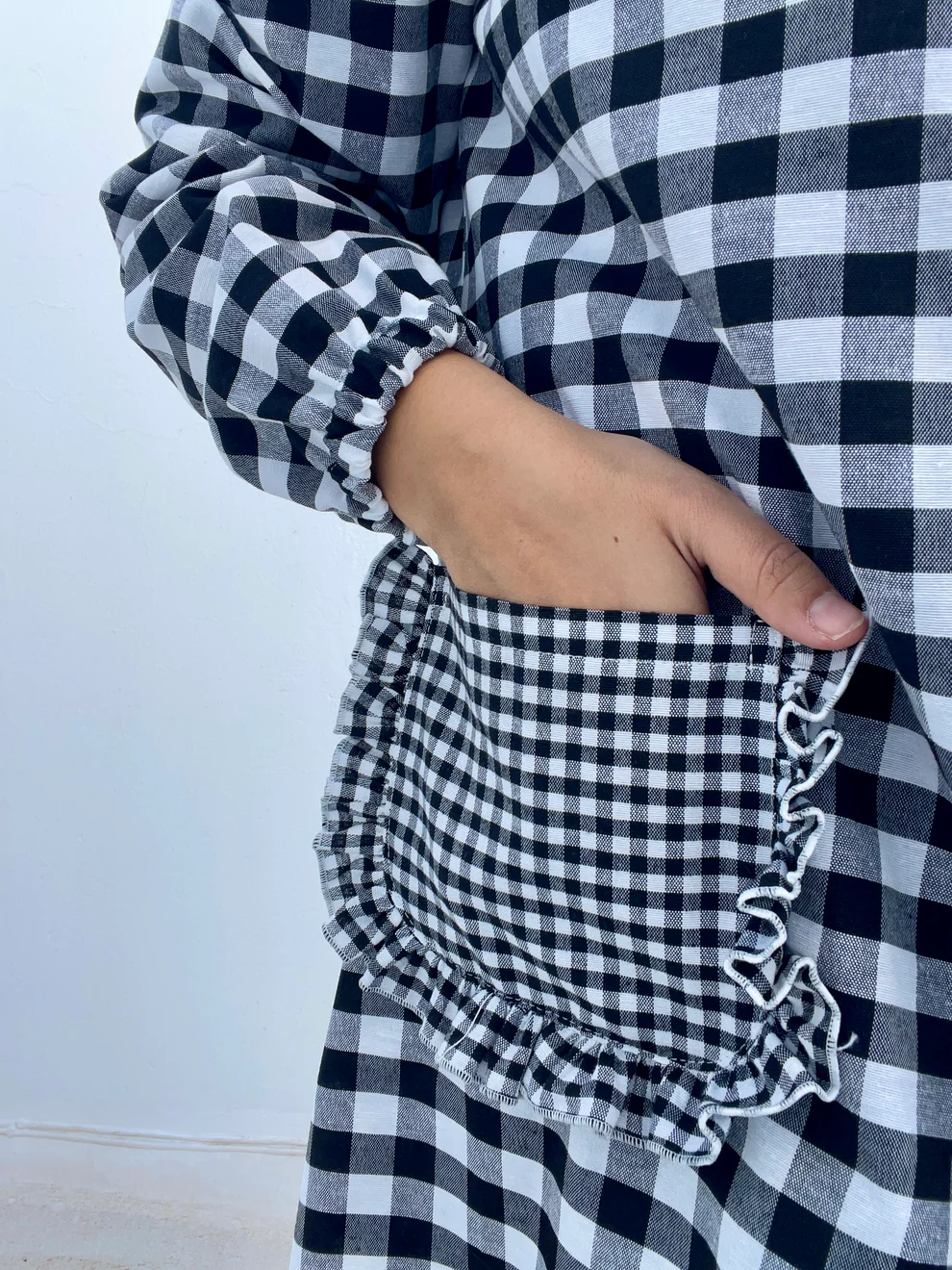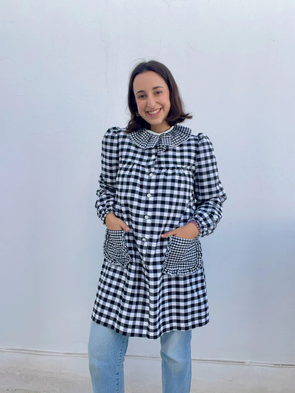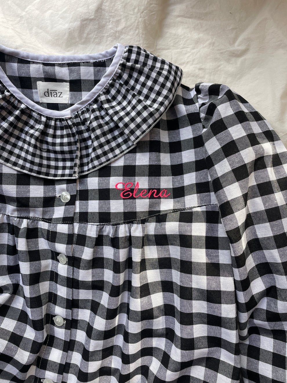 Empezando por el cuello con la novedad de este tejido de vichy pequeño para que lleves tu esencia todos los días y junto a él puedas poner tu nombre. Además con unos bolsillos a juego para