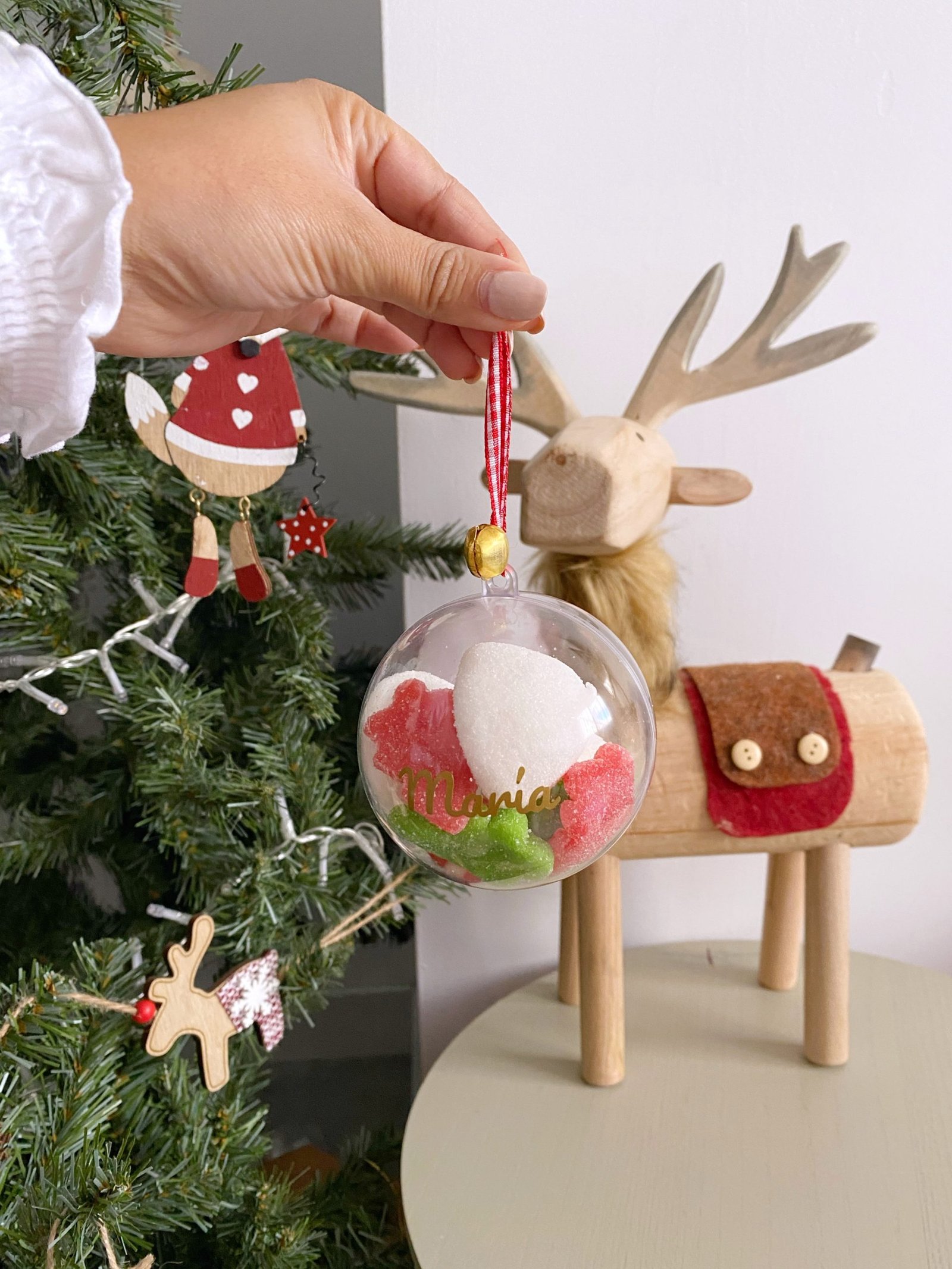 Llena de magia tu árbol o sorprende a tu persona favorita con un bola personalizada. Un detalle único para felicitar estas navidad a las personas que más quieres y de paso endulza su día, porque además de ir personalizada, va llenita de amor y de chuches.
