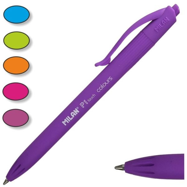 - Bolígrafo retráctil con cuerpo redondo y antideslizante del color de la tinta