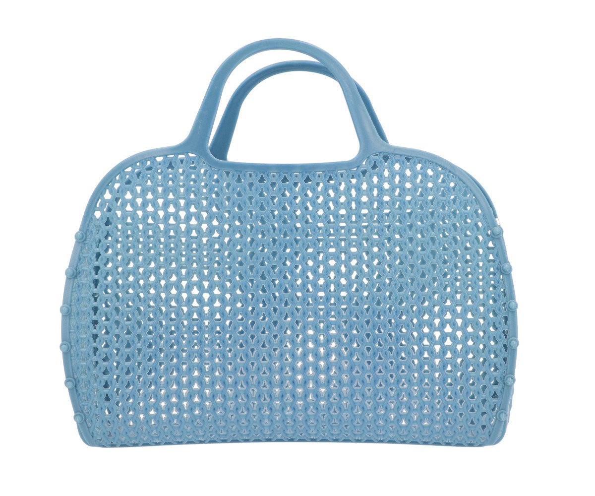 Con originales colores y un diseño ligero y práctico, esta bolsa es perfecta para playa, piscina o paseos por la ciudad. Su material de plástico LDPE reciclable y la rejilla integrada la hacen resistente, fácil de limpiar y totalmente desmontable.