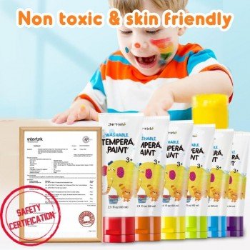 - Incluye: 6 tubos de pintura de dedos lavable de 60 ml: rojo, naranja, amarillo, verde, azul y morado.