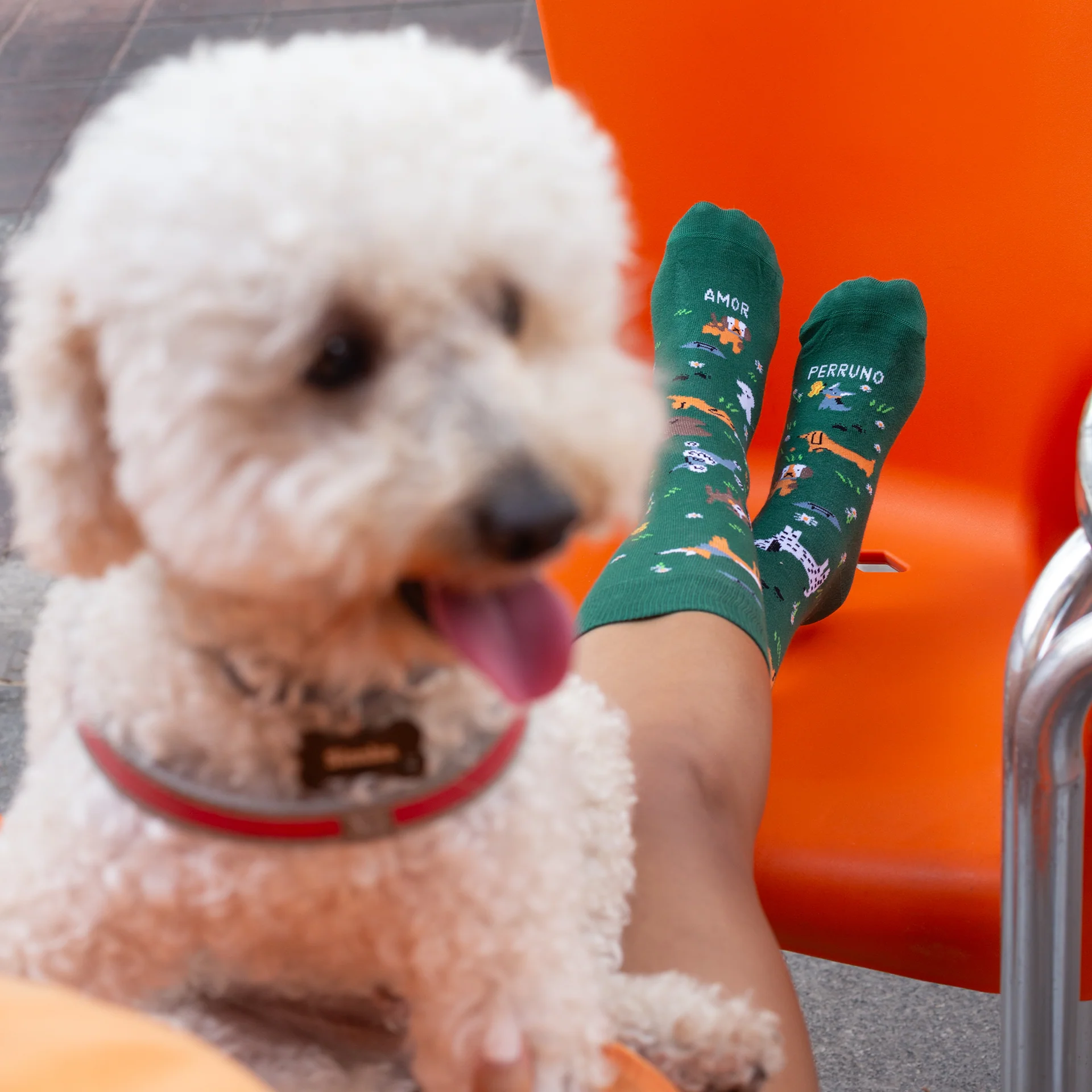 Si tu Instagram está lleno de fotos de perros, necesitas estos calcetines. Celebran el amor más fiel. Suaves, divertidos y con mensaje tierno, ideales para quienes viven rodeados de lametones y cariño perruno.
