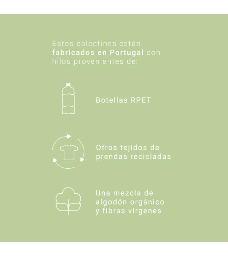 Estos calcetines están fabricados en Portugal con hilos reciclados provenientes de:
