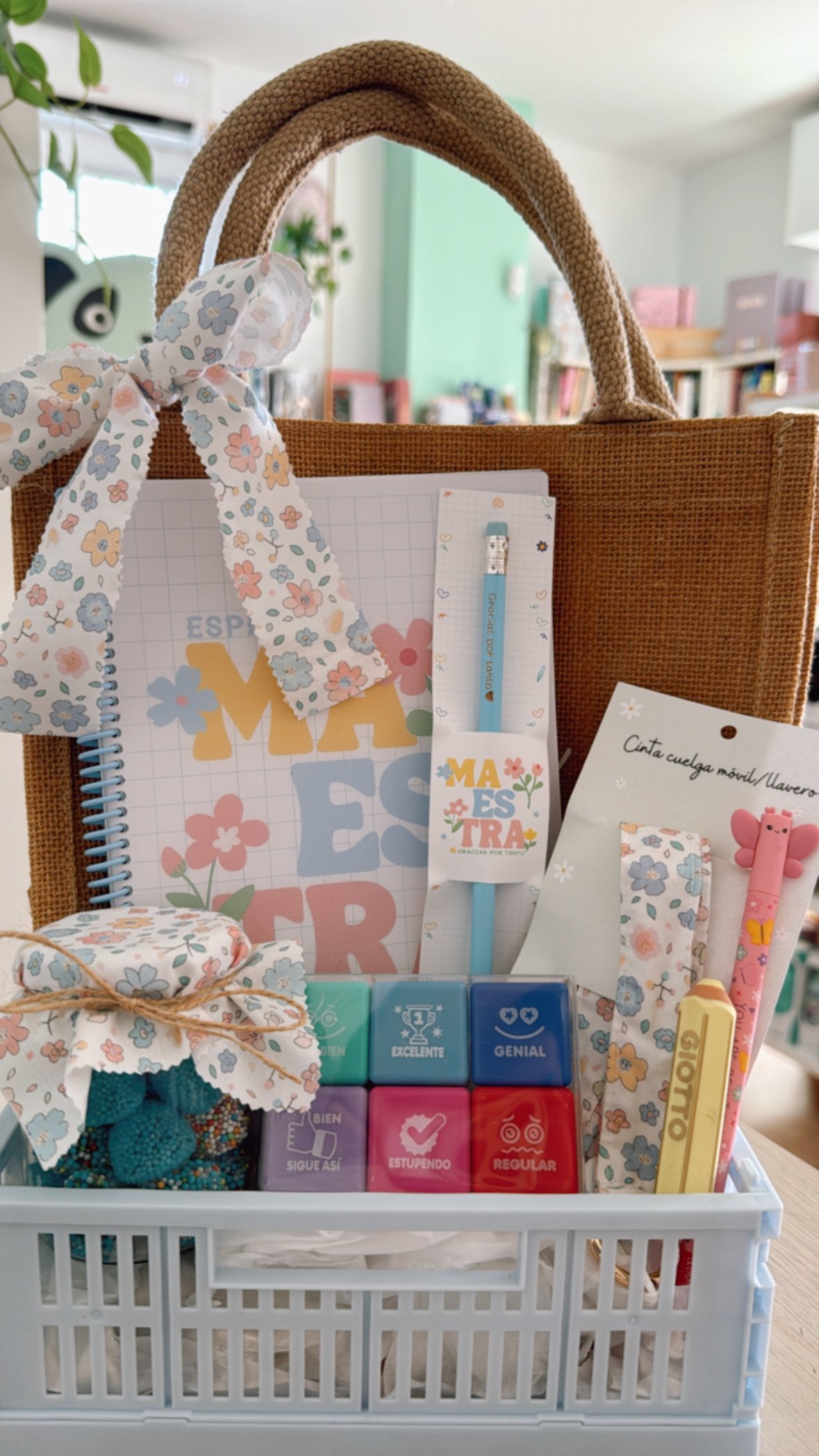 17 valoraciones en CESTA «MAESTRA BOLSO YUTE» PERSONALIZADA 4