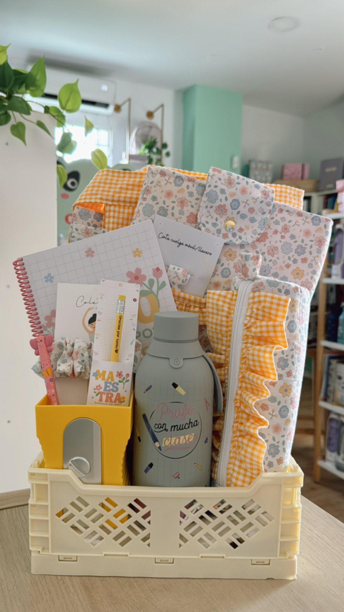 CESTA PROFE 9 «SALMA YELLOW CON MANDIL» PERSONALIZADA