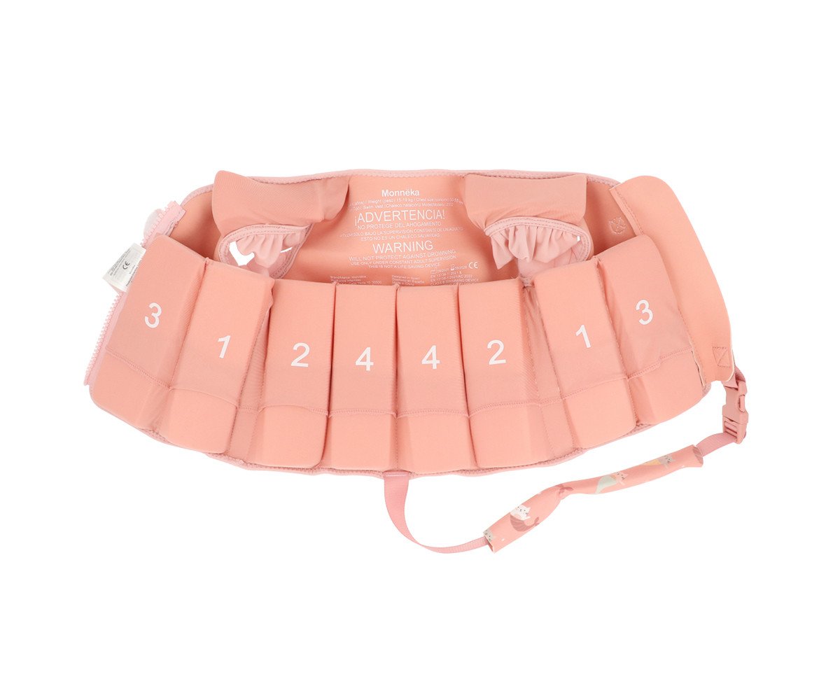 Empieza la aventura del agua con el chaleco flotador Monnëka de la nueva colección Mermaid Cats 2026, ideal para acompañar a los más pequeños en su aprendizaje de natación. NOVEDAD: Este año la talla 3-6 tiene un nuevo diseño, que incluye foam en la parte superior del pecho y la zona posterior del cuello, mejorando la posición horizontal y el equilibrio en el agua.