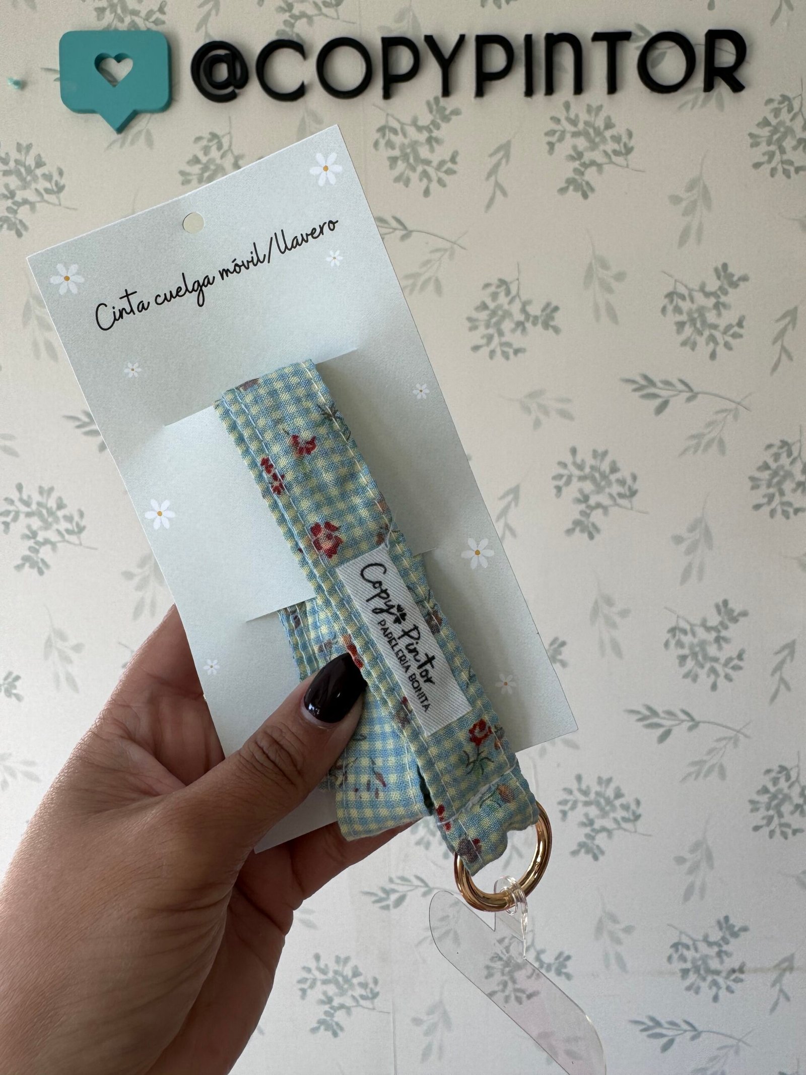 12 valoraciones en CINTA CUELGA MÓVIL/LLAVES FLORES VICHY MINT