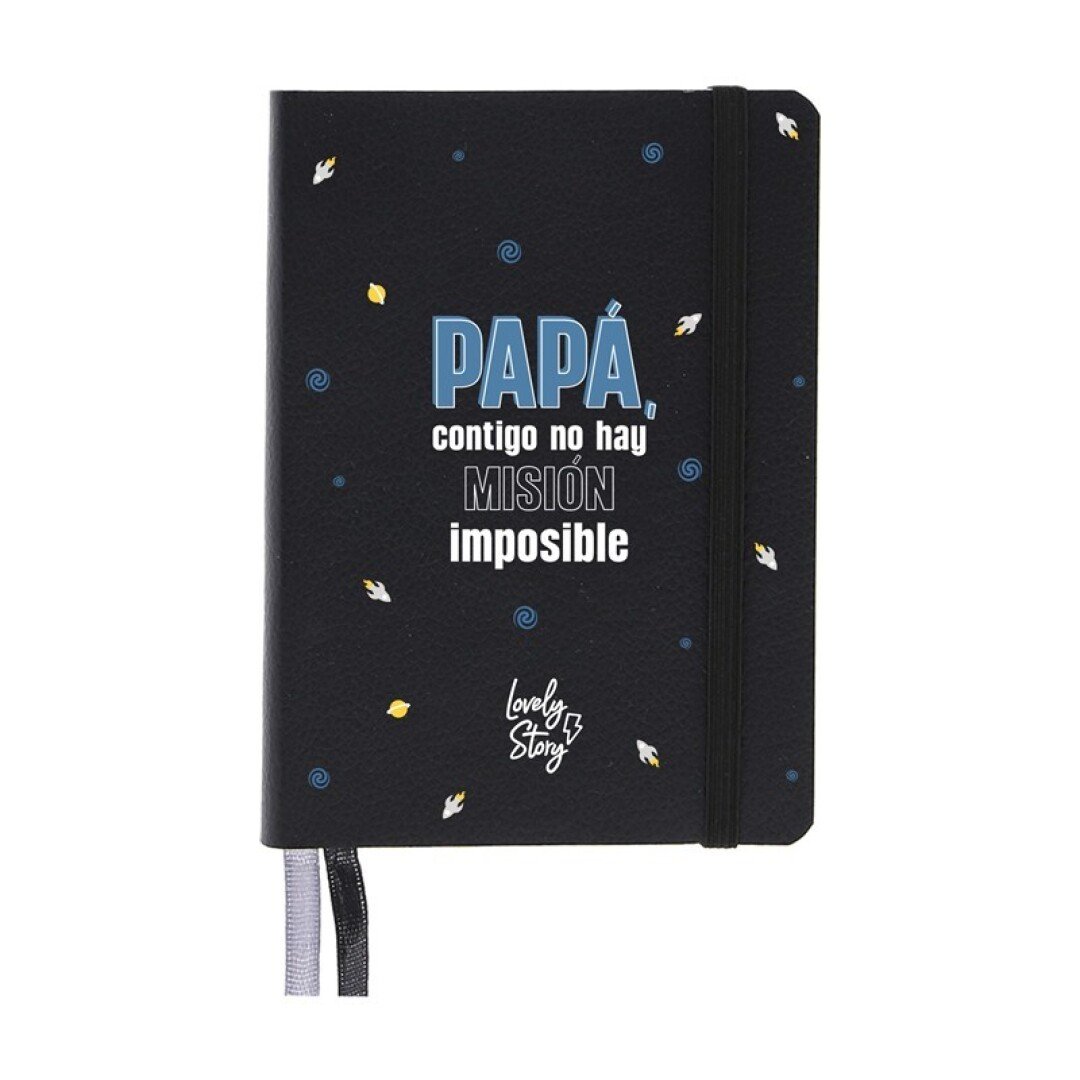 CUADERNO NOTEBOOK A6 NEGRO PAPÁ CONTIGO NO HAY MISION IMPOSIBLE LOVELY STORY