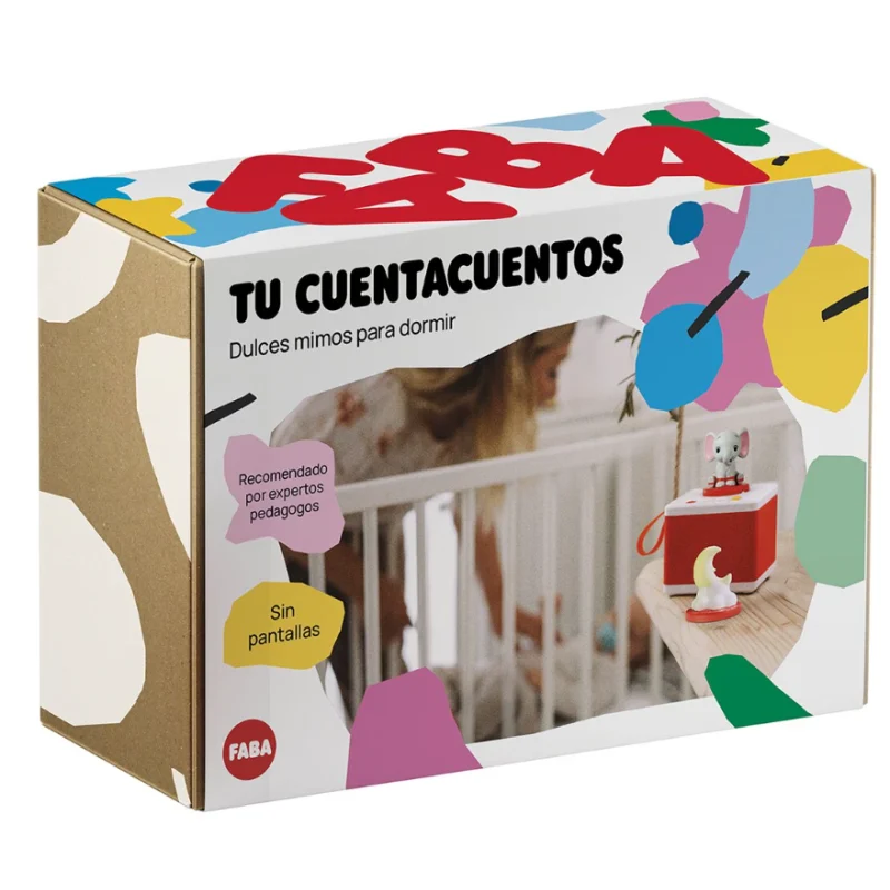 El kit contiene: FABA Cuentacuentos El Personaje Sonoro Las canciones de Ele el elefante 12 canciones para niños muy populares con 4 pistas de audio extra que se pueden descargar a través de la app MyFaba. El Personaje Sonoro Cuentos con beso para las buenas noches Ocho cuentos tiernos y divertidos para escuchar antes de irse a la cama. Cada uno termina con un dulce beso. Funda protectora Fabricada con una silicona suave y antideslizante, protege FABA Cuentacuentos de arañazos y golpes. La guía ¡Qué sueño! elaborada por la pedagoga Veronica Aureli, especializada en educación emocional y trastornos del sueño. Cable USB