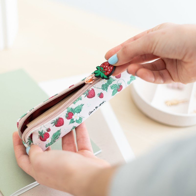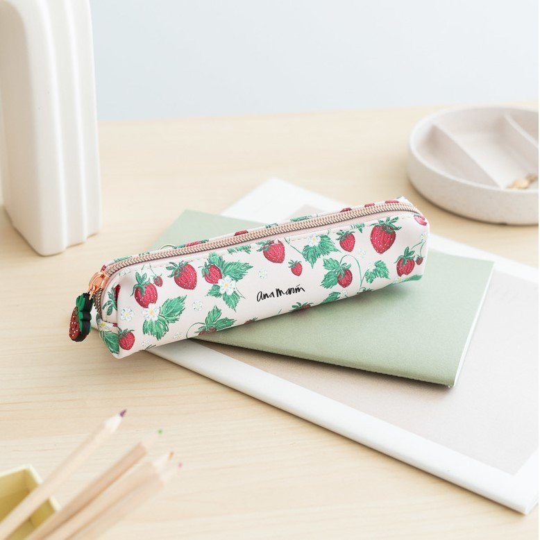 Este estuche de Ana Marín es el elemento perfecto para guardar tus lápices, bolígrafos y demás materiales. Cuenta con cierre superior de cremallera. El exterior está fabricado en poliuretano con diseño impreso en seda y el forro interior en poliéster.