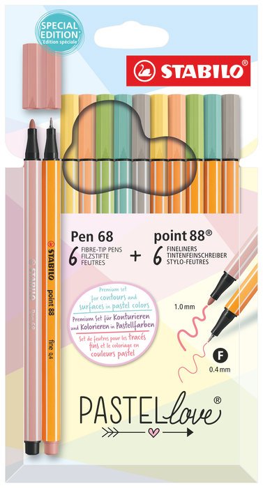 ESTUCHE MIXTO PASTEL LOVE STABILO PEN 68 & POINT 88 12 UDS