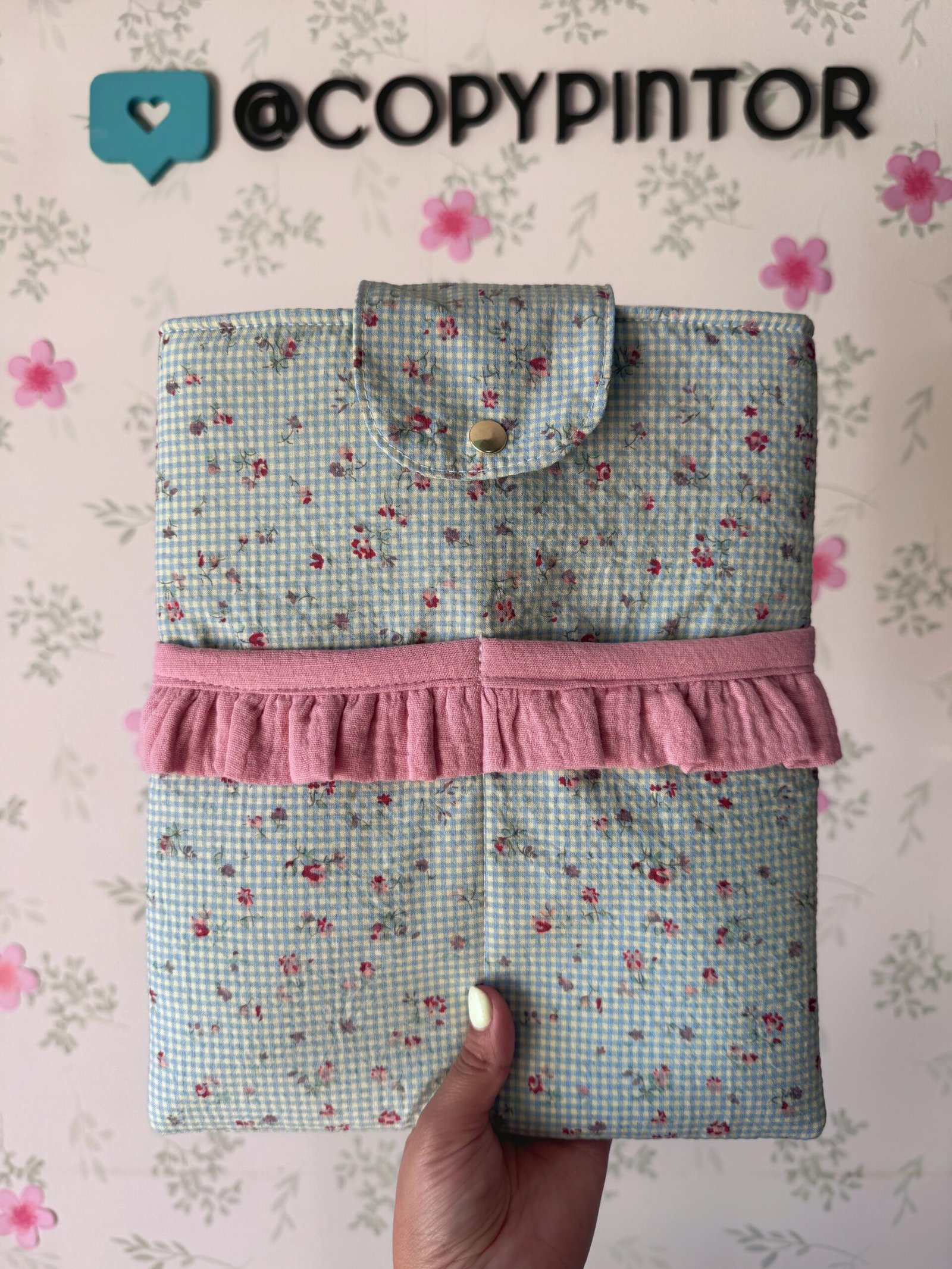 Funda libro botón Vichy flores Mint