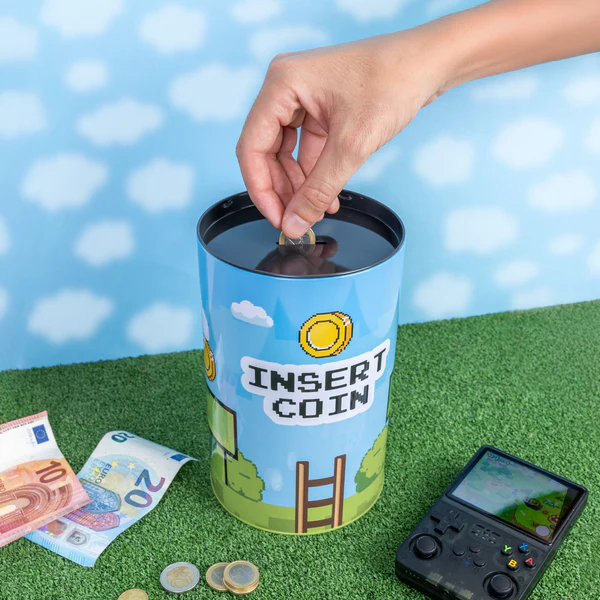 No importa si eres de videojuegos retro o si prefieres los más novedosos, con esta hucha gamer podrás ahorrar para renovar tu set up y comprarte todos tus caprichos. Gracias a su tamaño es ideal para llenarla de billetes y monedas y cuando la abras ¡disfruta y diviértete! Eso si…. para abrirla tendrás que utilizar un abrelatas por lo que es mejor que no saques los ahorros de la hucha hasta que no te entre ni un céntimo más en ella.