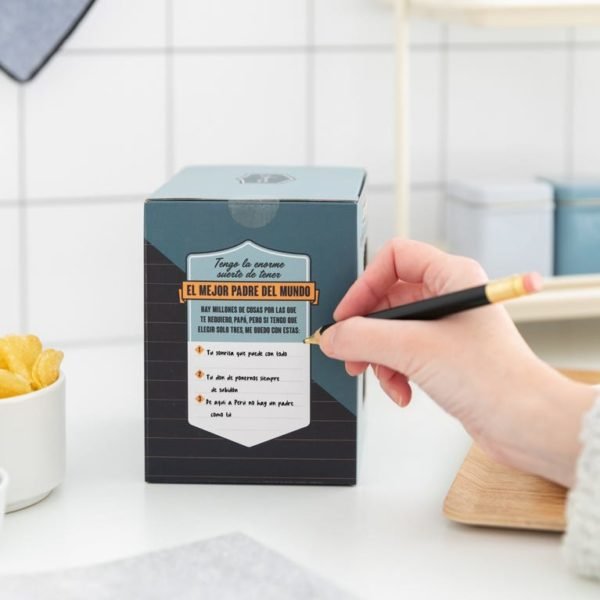 El diseño de esta jarra es divertido y desenfadado, lo que la convierte en un regalo ideal, con un mensaje superoriginal. Es perfecta para el día del padre, para su cumpleaños o para sorprenderle en un día que parecía ser como otro cualquiera. Hoy es su día, hoy toca recordarle lo genial que es. ¡Y con esta jarra no lo olvidará! Además, si te apetece hacerle más detallazos, date una vuelta por nuestra tienda online o física, porque tenemos una línea de regalos para padres geniales. ¡Encontraréis verdaderas joyas!