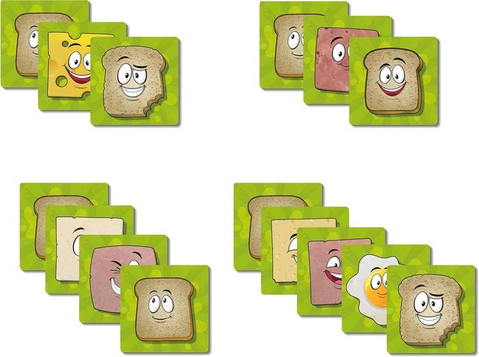 Mixto Con Huevo es un juego de rapidez visual en el que los jugadores tendrán que ser los más rápidos en identificar patrones (tipos de bocadillos) en el centro de la mesa para ganar la partida. El que consiga todas las cartas será el ganador.