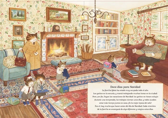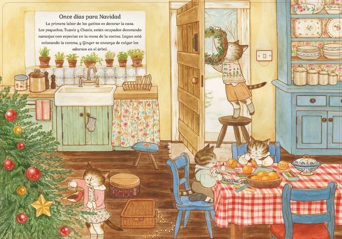 En esta ocasión, la familia de gatos, gatitos y abuelos felinos se preparan doce días antes del día de Navidad haciendo dulces navideños, decorando la casa y cantando en su pueblo, de casa en casa. ¿Qué sorpresas encontraremos en las páginas navideñas?