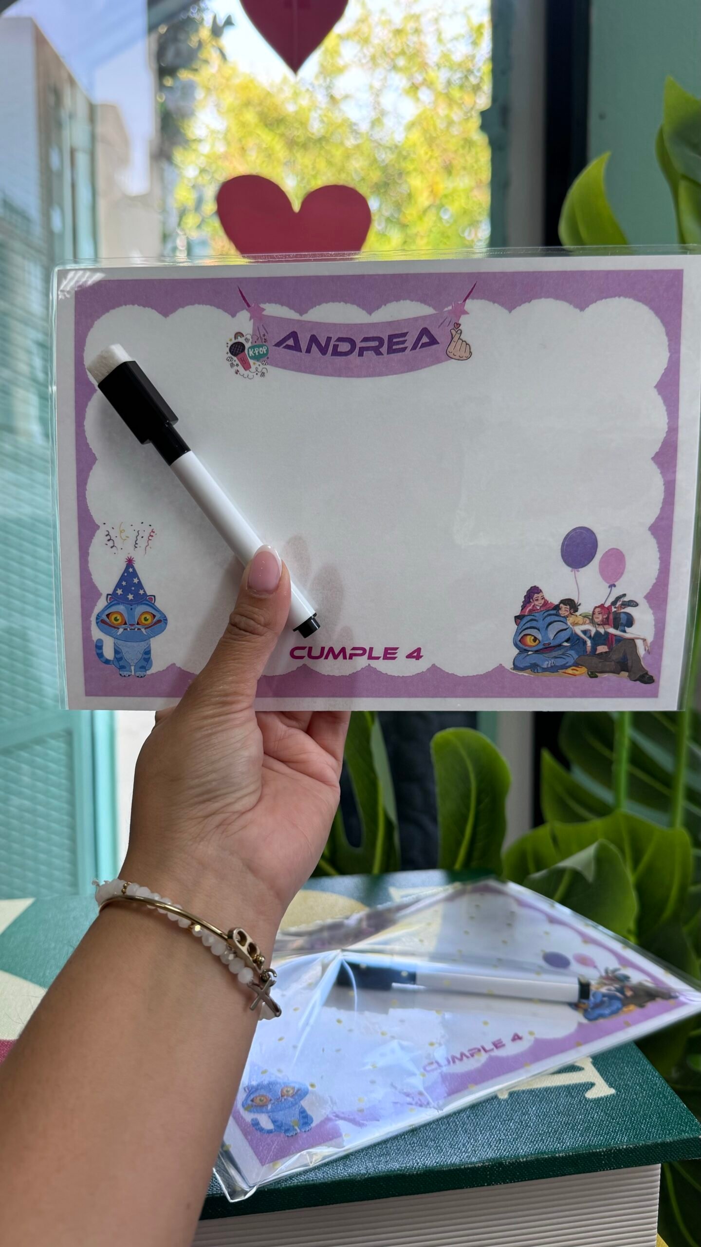 Lámina borrable personalizada, ideal como detalle para cumpleaños y eventos infantiles.