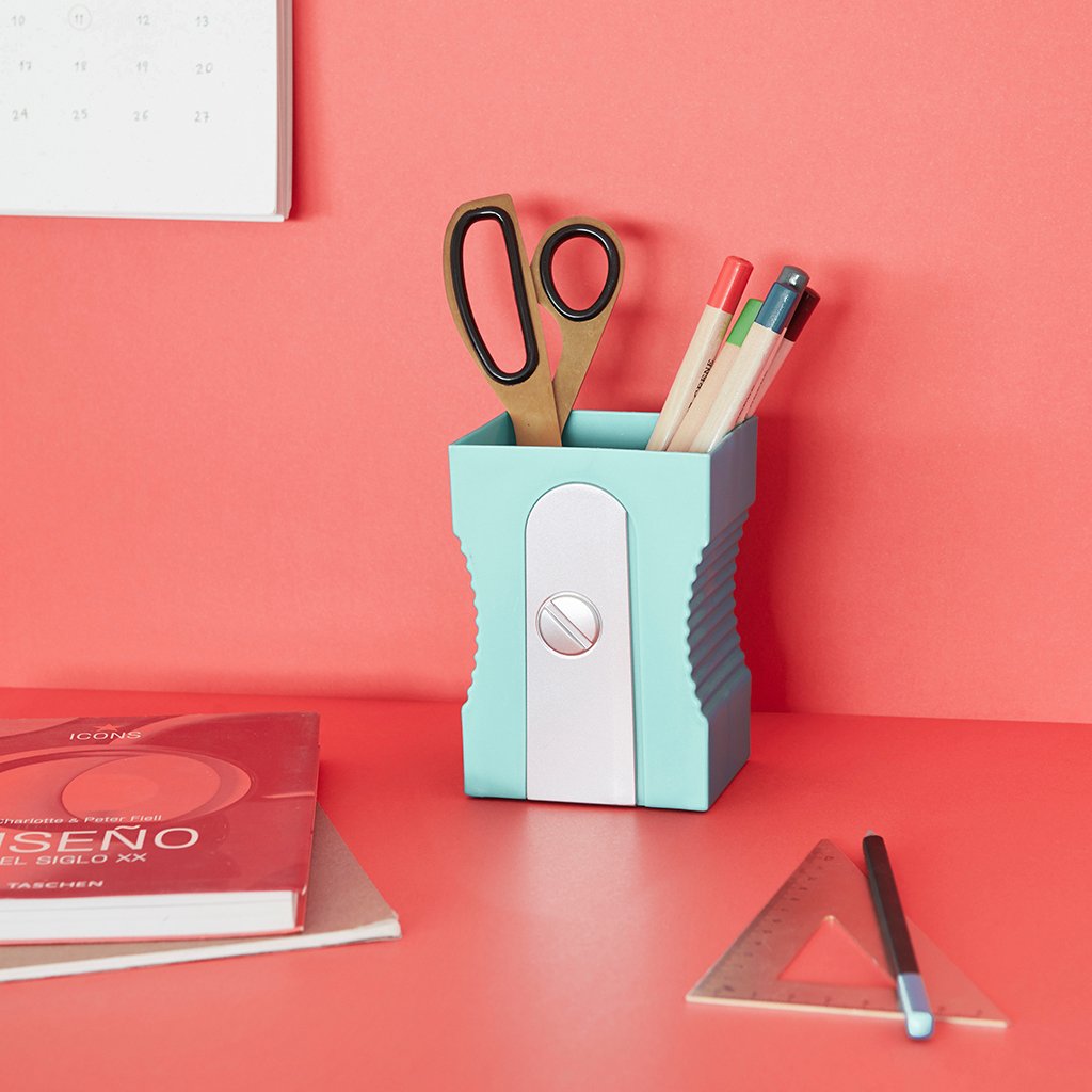 - ORIGINAL Y DIVERTIDO: Portalápices decorativo en forma de sacapuntas, para dar un toque de estilo al escritorio o mesa de trabajo.