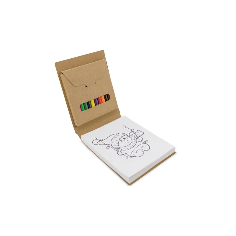 Pues tenemos la solución una libreta de cartón con 12 lápices de colores y 12 divertidos dibujos para colorear y también hojas en blanco para realizar las anotaciones que necesites o desarrollar tu imaginación.