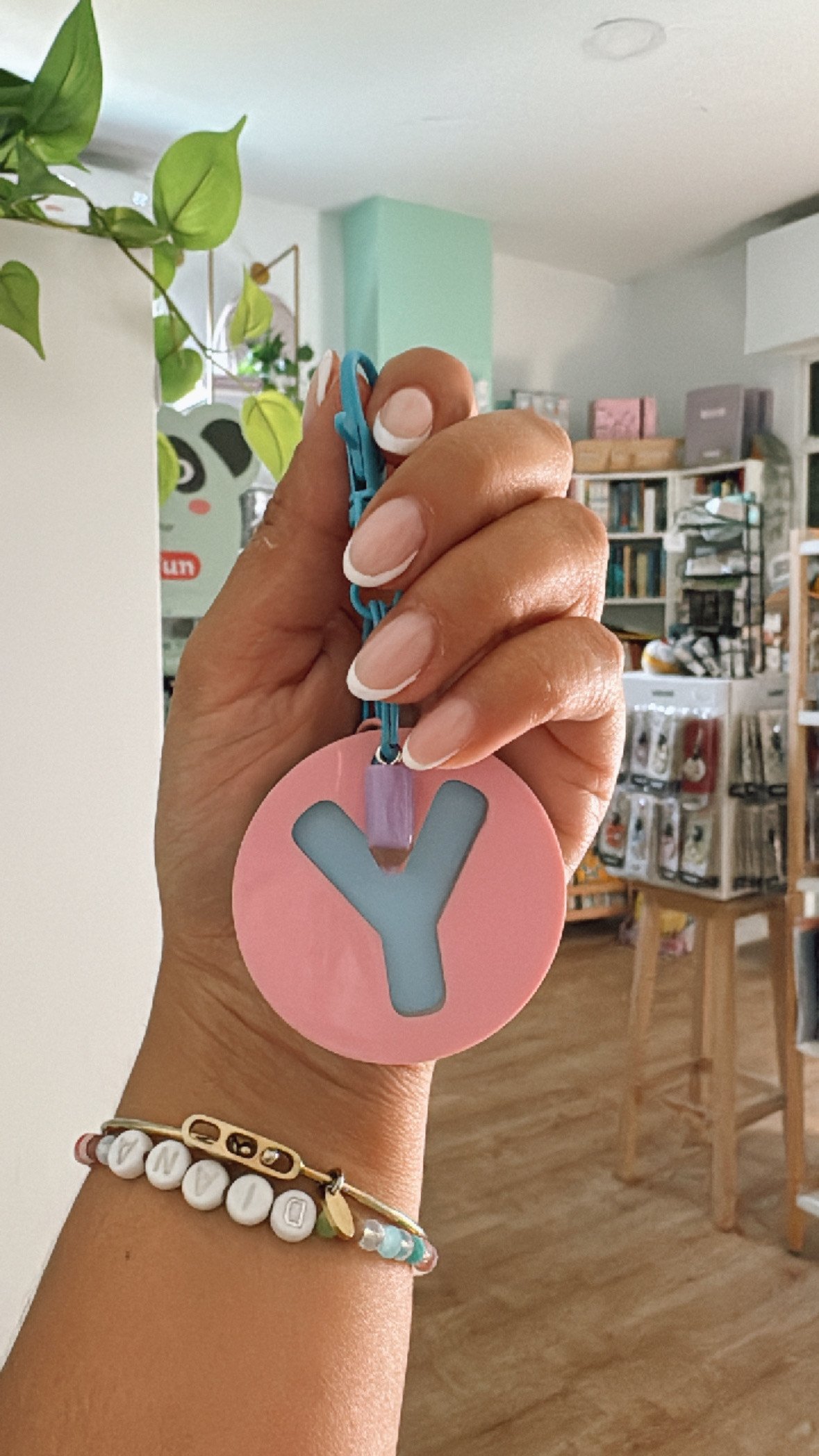 Un llavero personalizado con su la inicial y el nombre grabado al respaldo. Un detalle útil, muy bonito para llevar siempre contigo.
