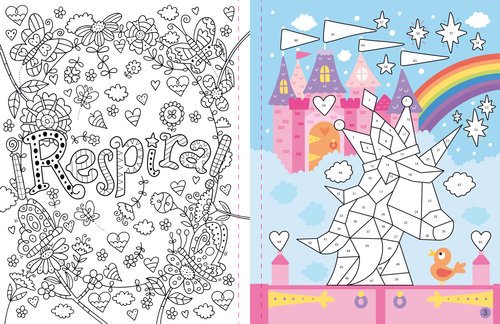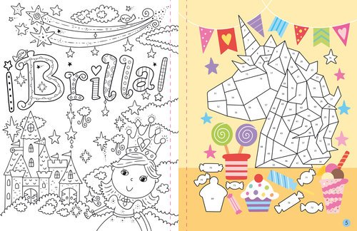 Mindfulness con pegatinas numeradas En este libro tienes todo lo que necesitas para crear 12 obras de arte con unas coloridas pegatinas. Detrás de las imágenes de unicornios, hay 12 bonitos pósteres con mensajes positivos para colorear. Guarda tus creaciones en el libro o separa las hojas perforadas para compartirlas y exhibirlas. Colorea el póster con la frase Elige una imagen y busca la lámina de pegatinas que le corresponde. Localiza el número de cada pegatina en la imagen y pégalas.