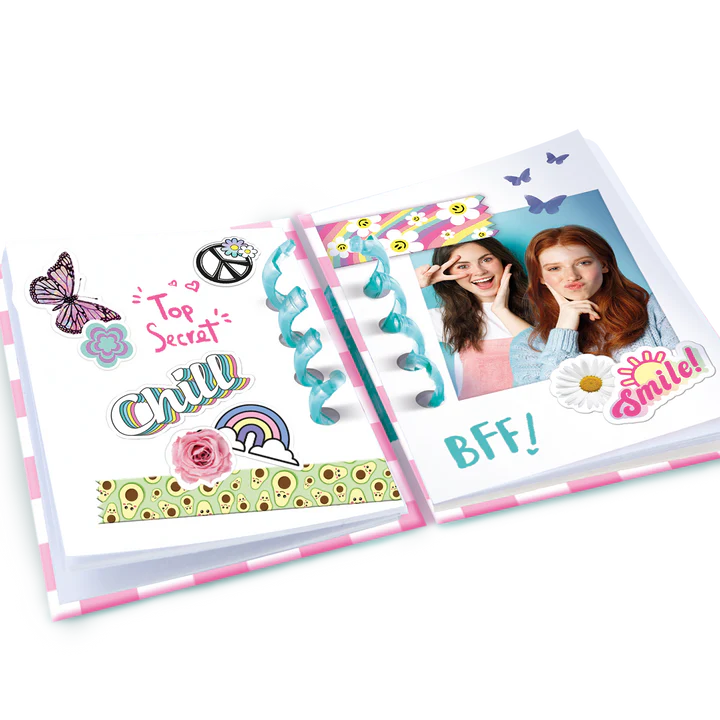 KIT COMPLETO Y DIVERTIDO: El set incluye todo lo que necesitas: una máquina, 4 mini bolígrafos/lápices DIY, un mini cuaderno, 2 hojas de mini pegatinas, mini cintas, una mini regla y varias decoraciones. Cada elemento ha sido diseñado para una experiencia creativa completa.