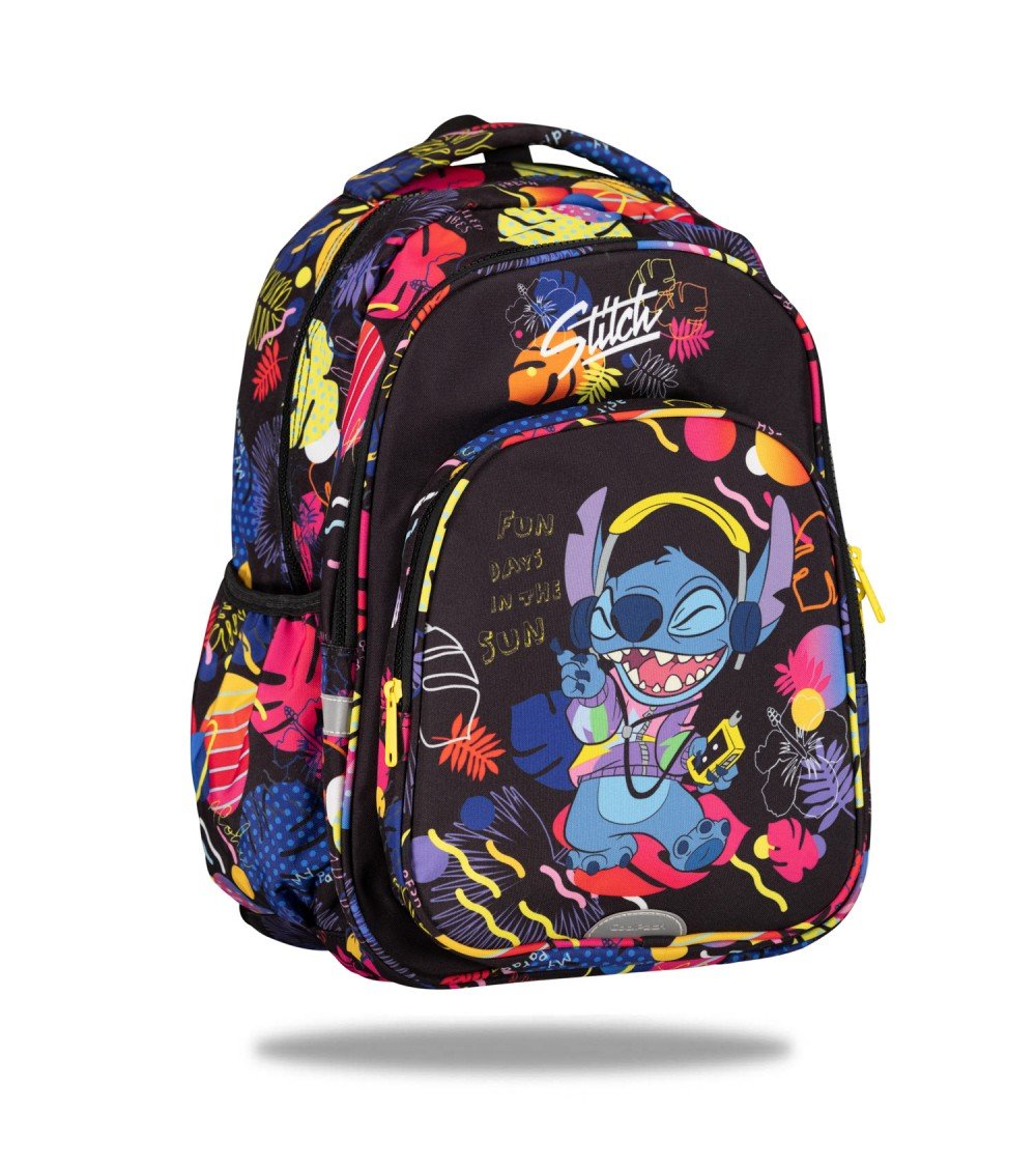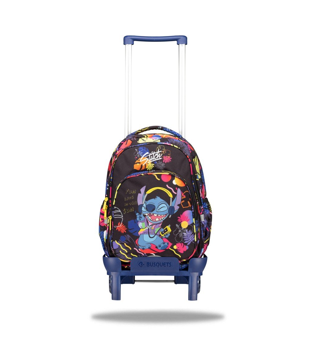 La mochila escolar BIBAK de Stitch de Coolpack tiene como característica principal que se puede llevar como una mochila normal a la espalda y gracias al pasador trasero y a una cinta de sujeción, puede adaptarse al sistema de carro.