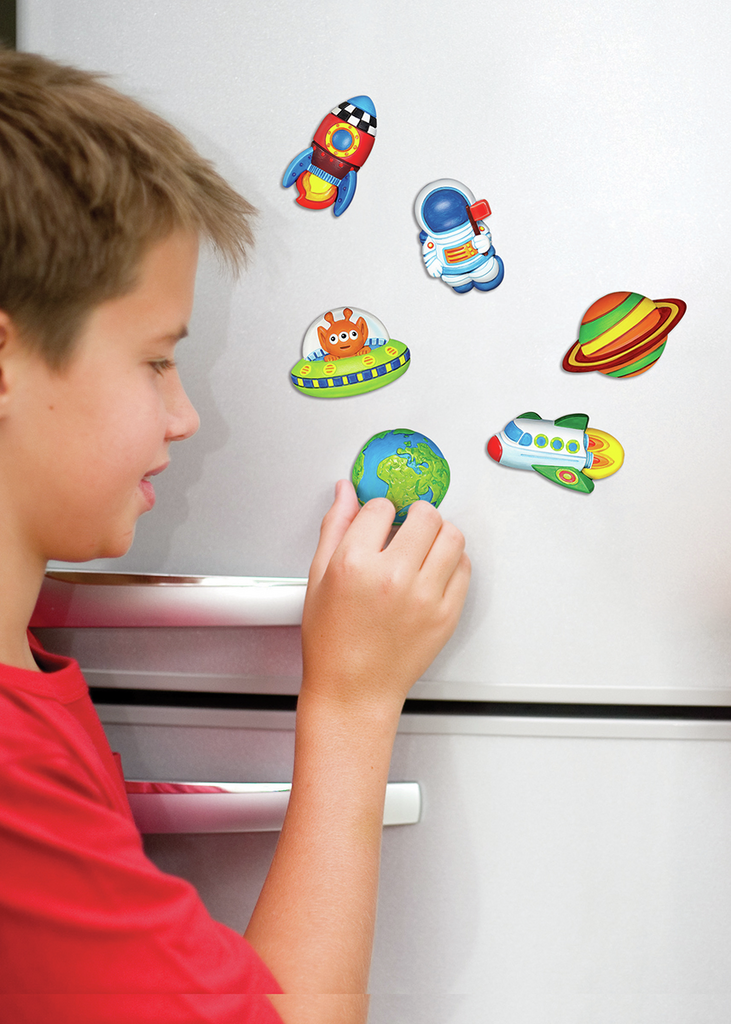 Los peques podrán crear su propia vía láctea moldeando y pintando sus imanes personalizados. ¡Sus habitaciones se convertirán en verdaderos espacios intergalácticos! Incluye: pinturas (amarillo, verde, rojo, azul y blanco), pincel, yeso y 6 moldes (1 cohete, 1 nave espacial, 1 extraterrestre en un ovni, 1 astronauta, 1 Saturno y 1 Tierra).