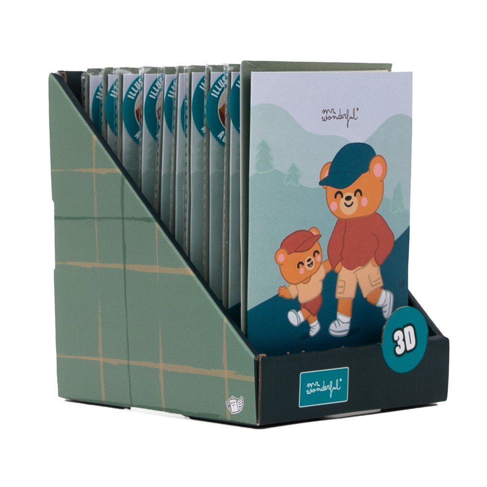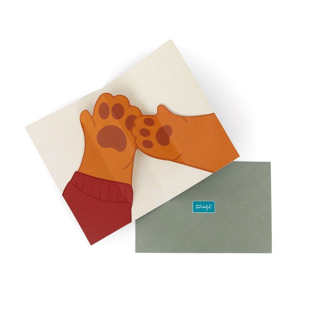 Postal en 3 dimensiones de la que, al abrirse, se despliegan dos patitas de oso. Hecha de papel de 100 gsm.