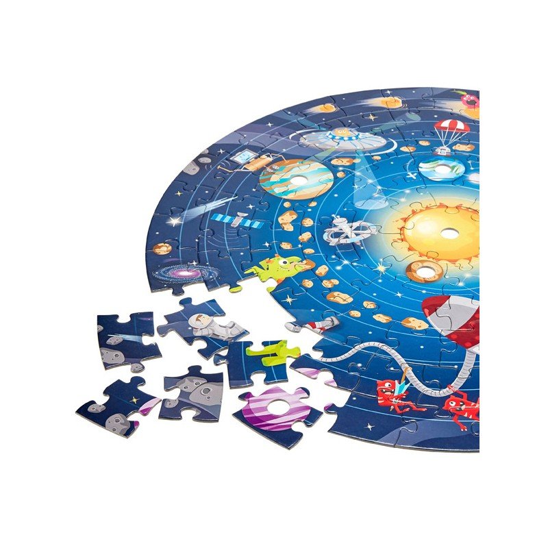 Conoce el sistema solar con este puzle de 102 piezas. Un brillante sol ilumina todos los planetas que lo rodean. Para poder montar el sistema solar, el puzle contiene los planetas hechos en madera maciza, un brillante sol LED y un póster con todos los nombres de los planetas.