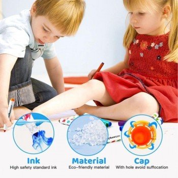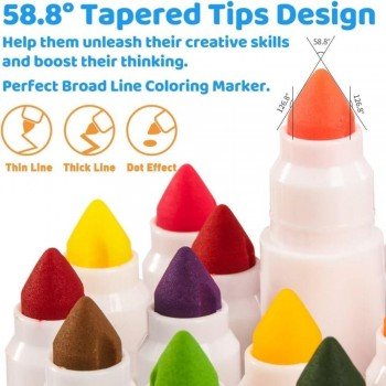 La punta cónica permite variar el grosor del trazo según el ángulo: líneas finas para detalles y trazos anchos para rellenar sin esfuerzo. Los colores son uniformes y fluidos, ideales para colorear, dibujar, garabatear y dar forma a proyectos en casa o en el aula.