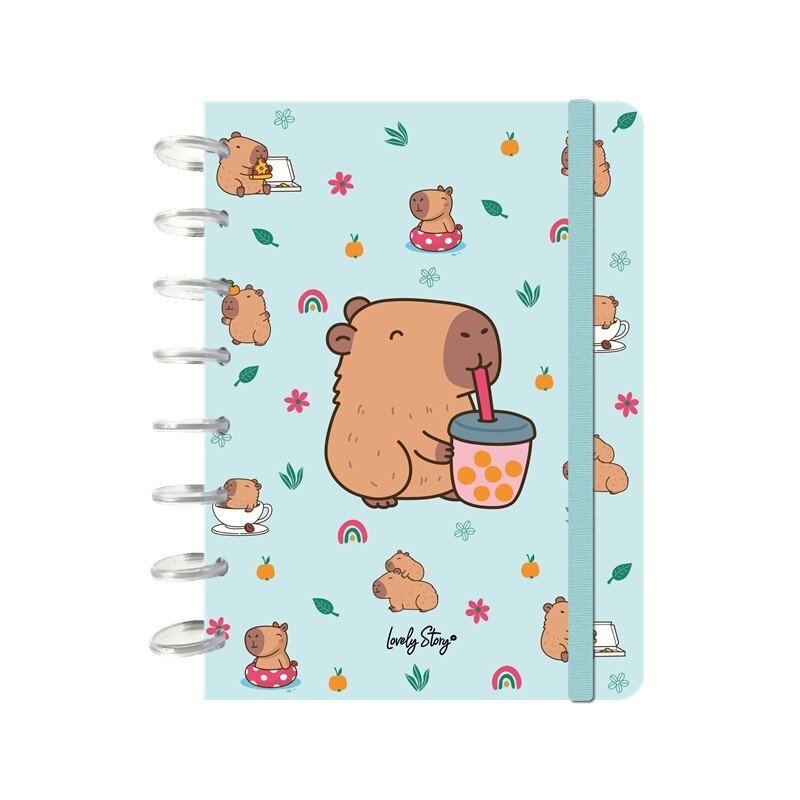 SMART NOTEBOOK A5 CON SISTEMA DE DISCOS – MINT – BUBBLE TEA CAPIBARA