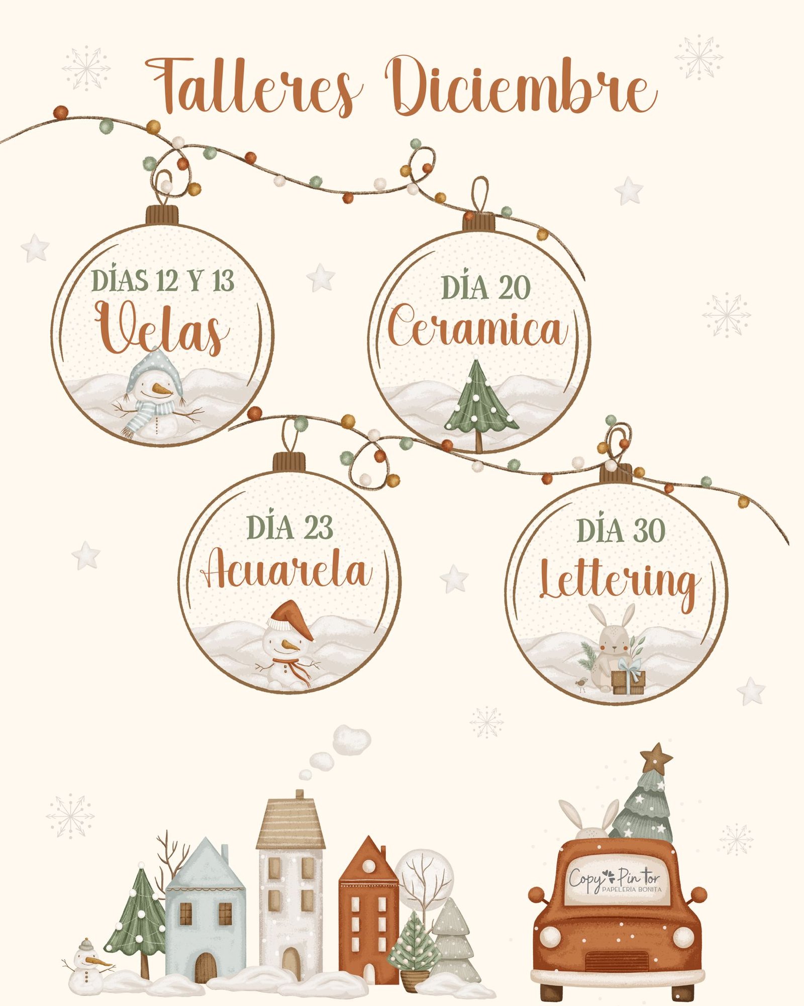 Durante las dos horas de clase aprenderán técnicas básicas de acuarela mientras crean ilustraciones navideñas súper chulas.