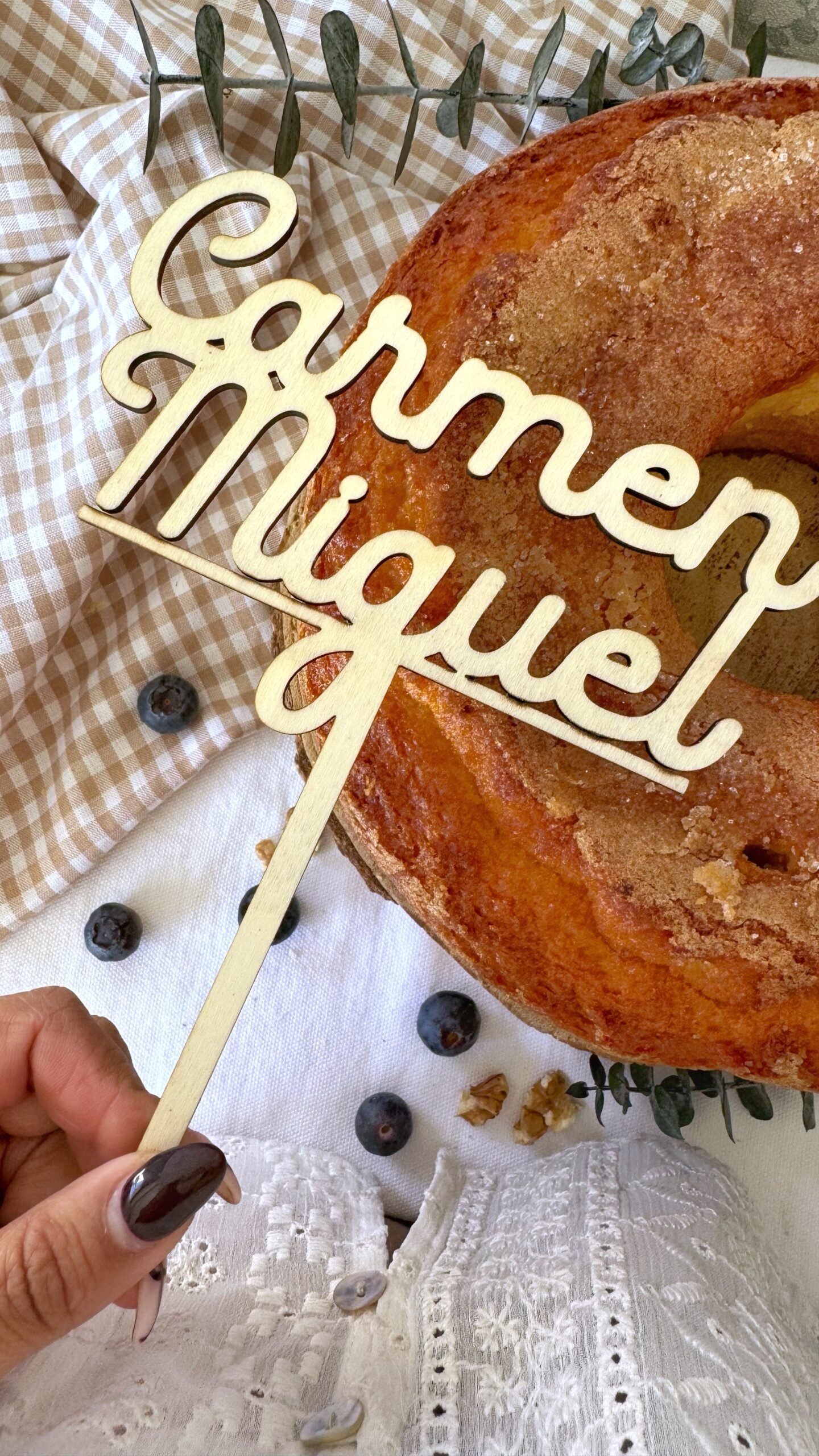 Topper tarta personalizado con su nombre.