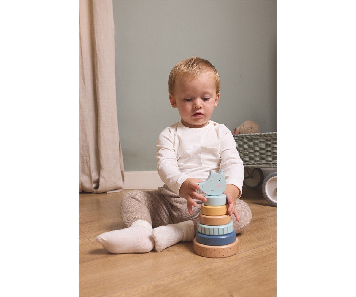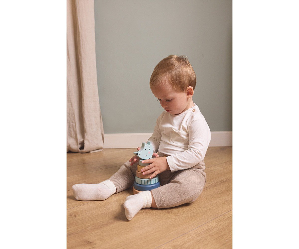 Esta torre apilable de Monnëka, que representa un simpático lobo feroz, es perfecta para entretener a los peques de la casa durante horas. Fomenta el desarrollo la coordinación ojo-mano y estimula las habilidades motoras finas, mientras que los peques aprenden a reconocer diferentes tamaños, formas y colores.