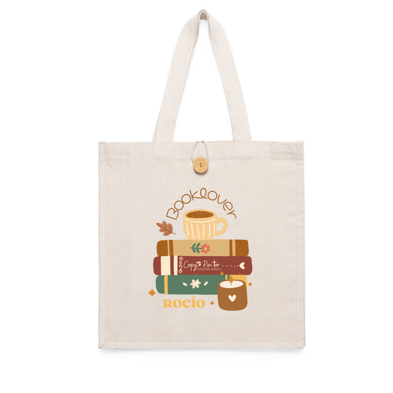 TOTEBAG CIERRE BOTÓN BOOKLOVER PERSONALIZADO