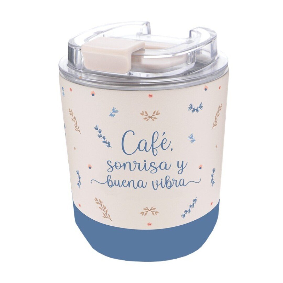 VASO TÉRMICO 280ML – SAND – CAFÉ, SONRISA Y BUENA VIBRA SUEÑA ALTO LOVELY STORY